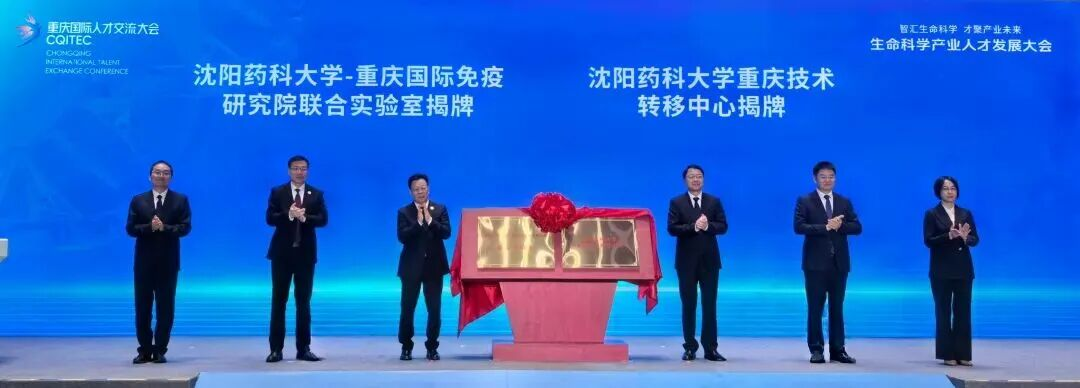 会上,高明宇代表学校与重庆市巴南区委书记陶世祥共同为“沈阳药科大学-重庆国际免疫研究院联合实验室”“沈阳药科大学重庆技术转移中心”揭牌,标志着校地合作迈出了实质性步伐、取得了关键进展。